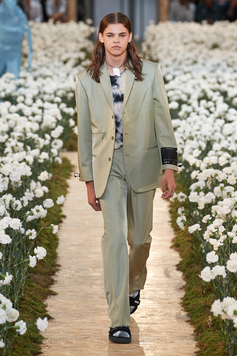 Поле. Белые гвоздики.Демон Pointman. Эти 3 вещи ассоциируются у меня с недавним показом OFF_WHITE. Над новой коллекцией Вирджило Абло работал с нью-йоркским художником Футуром. Его динамичны работы мы смогли лицезреть на белых мужских костюмах.