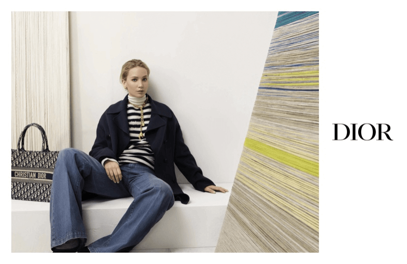 Лицом новой кампании бренда DIOR стал неизменный амбассадор бренда-талантливая актриса Дженифер Лоуренс. Девушка была одета в стеганые пальто, свободные джинсы и свитера, каждый образ дополняла особенная сумка. Как видим все больше стает популярнее не все безвкусный гламур с пайетками и камушками, а высокая лаконичность и практичность.